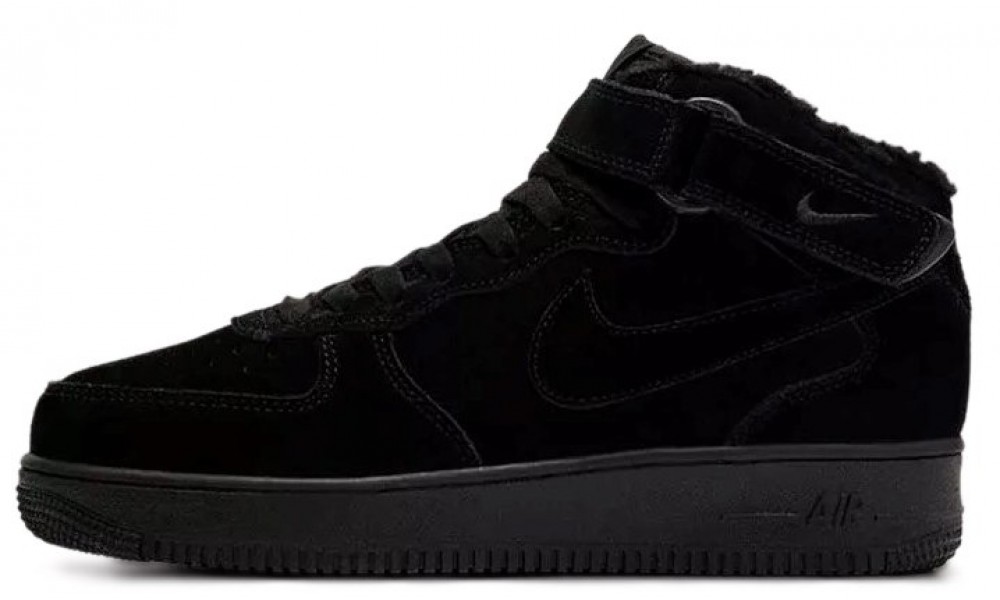 Кроссовки Nike Air Force 1 07 Mid Black с мехом