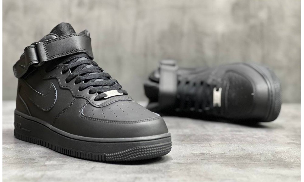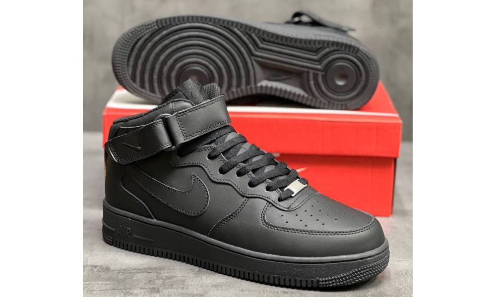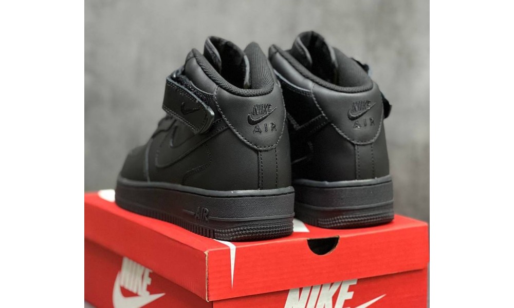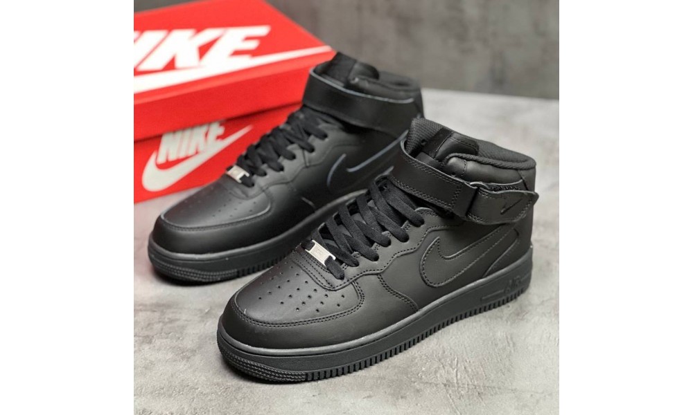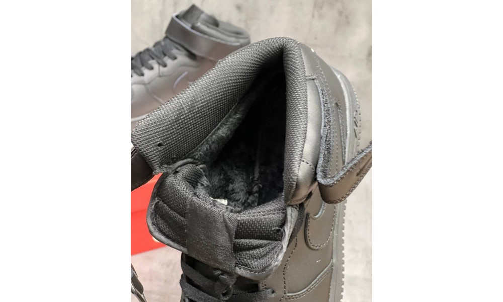 Nike Air Force 1 Mid All Black с мехом