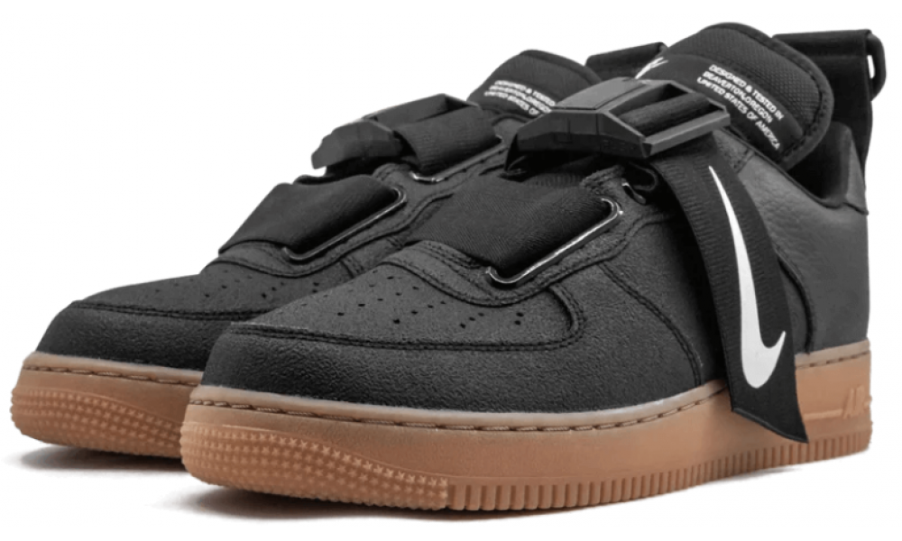 Кроссовки Nike Air Force 1 Utility черные с коричневой подошвой