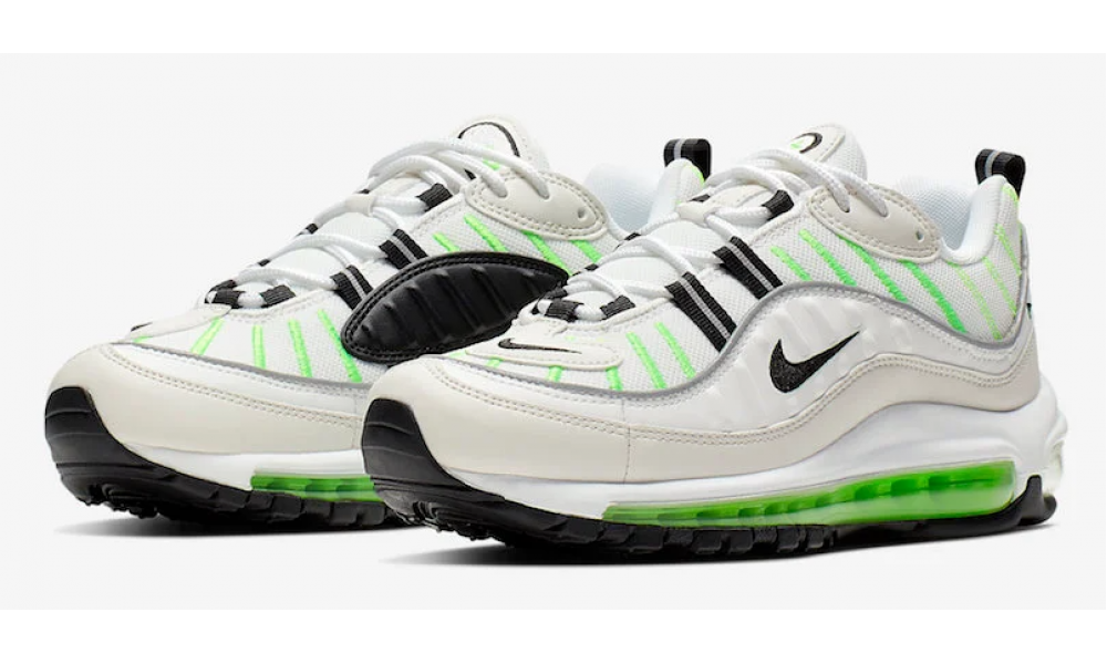 Кроссовки Nike Air Max 98 белые с зеленым
